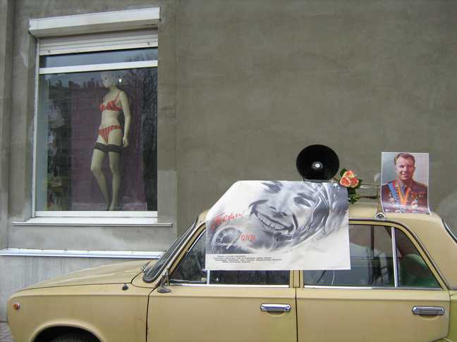 – Сегодня это достойное произведение, увы, сокрыто от людских глаз, – вступает в разговор один из лидеров киевских коммунистов, курирующий (в должности первого секретаря райкома) Голосеевский район, Вячеслав Неволин. Его местонахождение неизвестно. То ли испугались «советского содержания» бронзовой реликвии, то ли отдали на реставрацию, но то ли прагматично сдали на метал…. Вот и приходится отмечать славный юбилей полета первого человека в космос – у пустой и безликой серой стены фабрики.