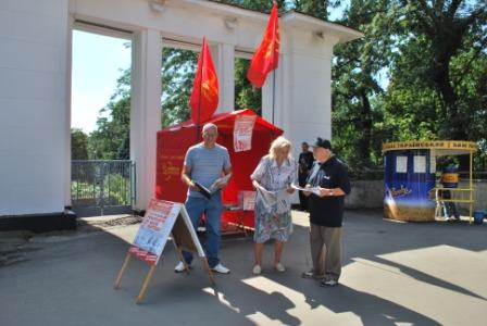 Коммунисты из первичной партийной организации «Центр-1» Шевченковского района (секретарь Яроменок А.Н.) проводила агитационную и разъяснительную работу с жителями микрорайона, приглашала их принять участие в опросе.