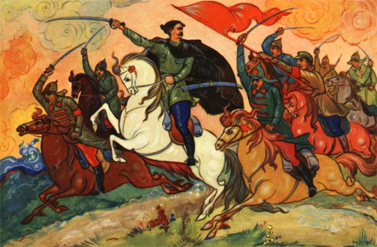 ГУЛЯЛ ПО УРАЛУ ЧАПАЕВ-ГЕРОЙ (из серии «Песни гражданской войны») Художник Ю. Виноградов.