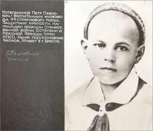 Будучи юношей (родился в 1929 году. - Прим. БЕЛТА) и воспитанником стрелкового полка, Петр Котельников встретил Великую Отечественную войну в Брестской крепости. Он явился прототипом главного героя киноленты Саши Аксенова. По его словам, в те дни не только он, но и другие мальчишки, воспитанники полка, в возрасте 12-15 лет делали все, что могли, чтобы помочь красноармейцам отразить натиск врага. "Мы вели наблюдение, делали вылазки за боеприпасами, добывали под обстрелами воду", - рассказал он.