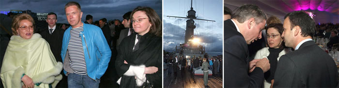 Мероприятие так и осталось бы незамеченным, но каким-то образом эта (наверняка далеко не первая и уж точно не последняя) «невинная шалость» зажравшихся и одуревших от собственного всесилия и безнаказанности чинуш, повязанных родственными, деловыми и дружескими связями с олигархией, оказалась известна прессе. И целый ряд как печатных, так и электронных СМИ выступили с публикациями и репортажами о данном событии. Как писала тогда газета «Фонтанка», «Аврора» преобразилась по случаю пьянки невообразимо: крейсер оброс прожекторами, звуковыми колонками, куда-то подевались вахтенные матросы и офицеры, а их места заняли игривые официанты, наряженные в гламурненькие тельняшечки, разносящие «сливкам нового российского общества» шампанское.