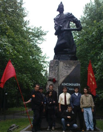 Сначала было проведено ставшее уже традиционным возложение цветов к памятнику советскому писателю-комсомольцу Николаю Островскому в парке на Соломенке, который носит его имя. Товарищ Островский, вступивший в комсомол в именно в 1919 году, сразу же ушел добровольцем на фронт и воевал в кавалерийской бригаде Г.И. Котовского и в 1-й конной армии С.М. Буденного. В 1921 году Николай работал в Киевских главных мастерских, учился в электротехникуме, одновременно был секретарём комсомольской организации. В 1922 году он участвовал в строительстве узкоколейки в Боярке для подвоза дров в замерзающий Киев. Обо всем этом он написал в своей книге «Как закалялась сталь». Подвиг комсомольцев 20-х годов нельзя не помнить.