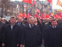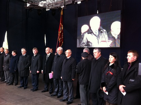 На митинге выступил первый секретарь ЦК Компартии Украины, председатель парламентской фракции коммунистов П.Н. Симоненко.