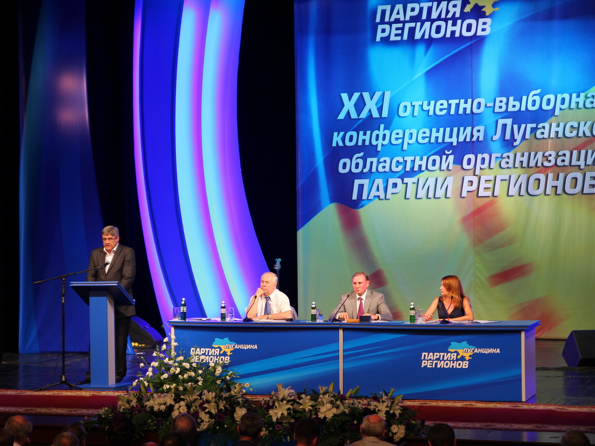 26 июня в Луганске состоялась XXI отчетно-выборная конференция Луганской областной организации ПАРТИИ РЕГИОНОВ. Участие в ее работе приняли 659 делегатов. Почетным гостем конференции стал Первый заместитель Председателя ПАРТИИ РЕГИОНОВ, Председатель Верховной Рады Украины Владимир Рыбак.