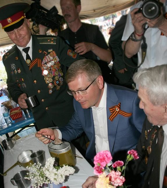 Александр Вилкул пожелал ветеранам долгих лет жизни, крепкого здоровья и благополучия. Участники войны отведали традиционную полевую кашу и подняли в честь праздника Победы знаменитые «фронтовые 100 грамм».