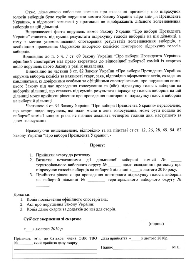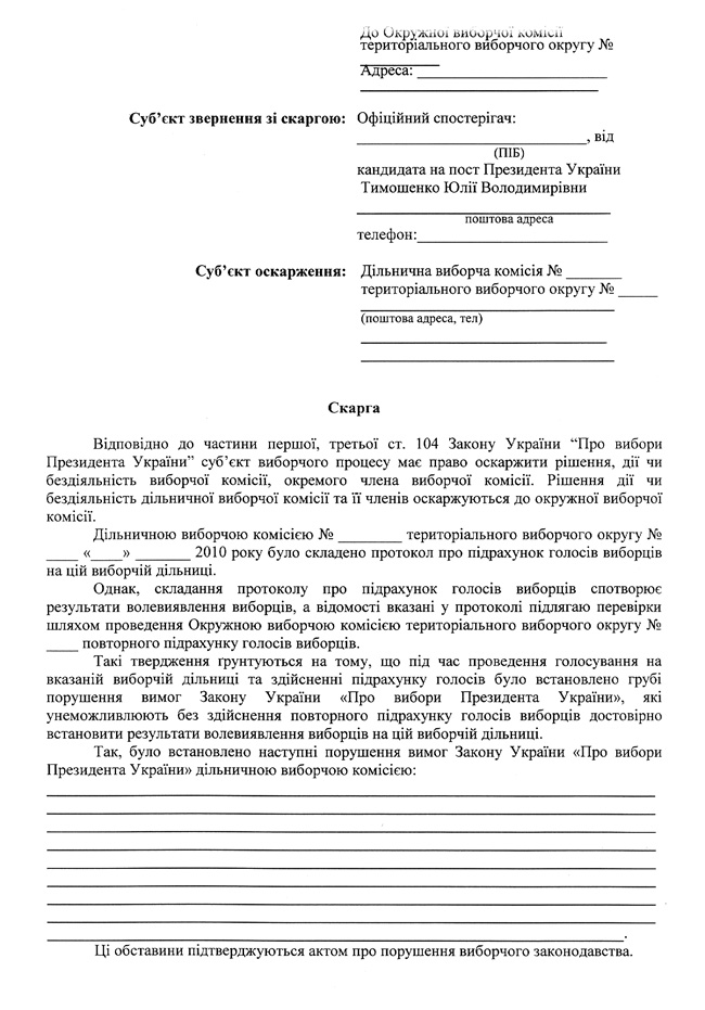 Образцы этого «высокого» канцелярского искусства, а если проще – заготовки лживых обвинений, с помощью которых БЮТ попытается создать якобы документальный фундамент обвинений регионалов в фальсификациях, мы предлагаем вашему вниманию.