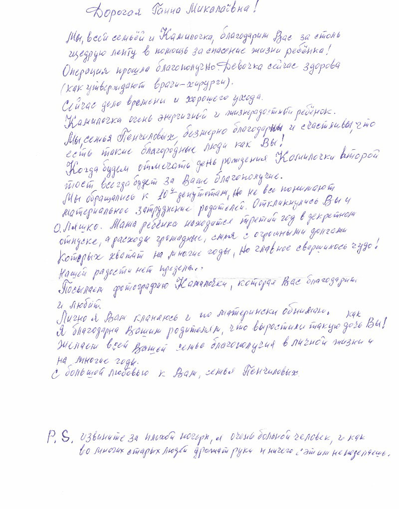 Они направили депутату письмо, в котором выразили свою благодарность за спасение дочери.