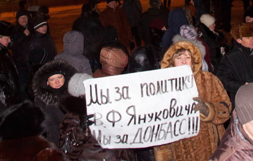 24 января по инициативе Донецкой областной организации ПАРТИИ РЕГИОНОВ в Донецке у памятника Т. Шевченко состоялся митинг в поддержку Президента Украины Виктора Януковича «Донбасс - за закон и порядок!»