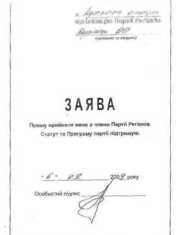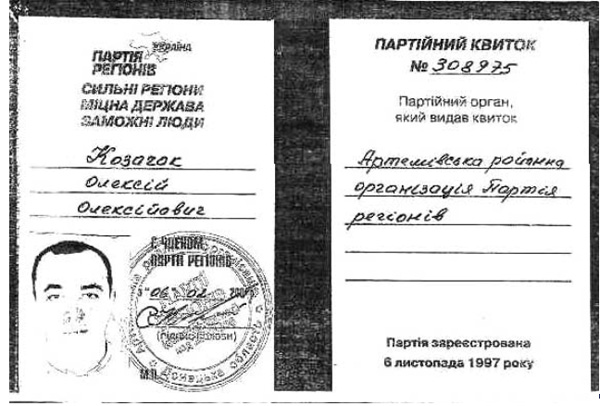 Членом Партии регионов А.А. Козачок стал 6 февраля 2009 года, в день его регистрации на должность луганского поселкового головы (копия прилагается).