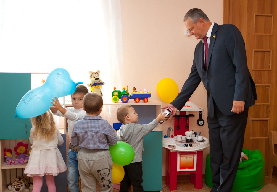 Кроме него, поздравить ребят с праздником пришли депутаты горсовета от ПАРТИИ РЕГИОНОВ Александр Собко и Олег Марчук, а также заместитель начальника исправительной колонии № 89 г. Днепропетровска Александр Вакуленко, который пообещал взять новый детский сад под патронат.