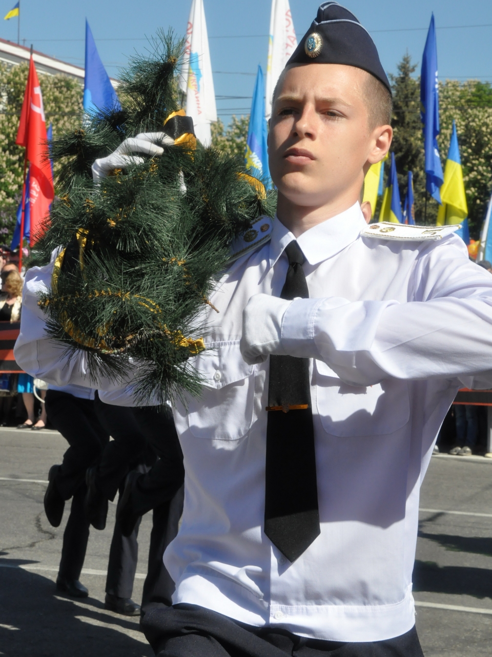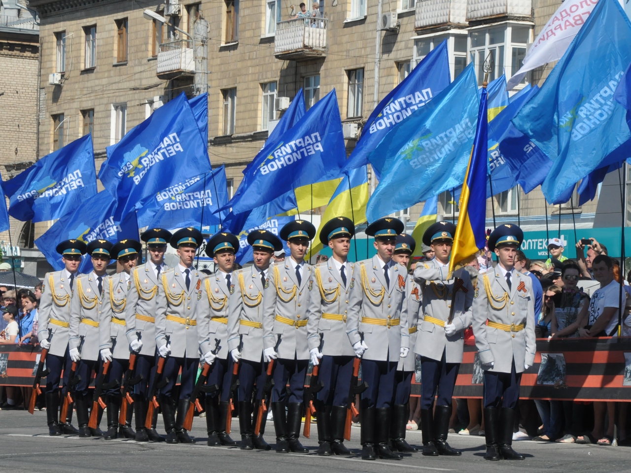 По площади Героев Великой Отечественной войны парадом прошли курсанты военных высших учебных заведений, лицеисты, сотрудники полка внутренних войск и батальона милиции особого назначения «Беркут».