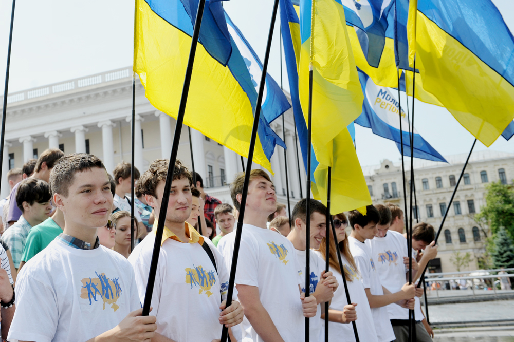 «Молодые регионы» в День Конституции развернули самый большой Государственный Флаг Украины и провели самое массовое чтение статей Основного закона Украины (ФОТО)