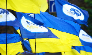 С самого утра активисты ВМОО «Молодые регионы» на Крещатике, Майдане Независимости и Европейской площади приветствуют киевлян и гостей столицы с праздником, а также дарят прохожим желто-голубые ленточки.