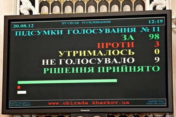 Сегодня в ходе пленарного заседания ХV сессии Харьковского областного совета VI созыва депутаты облсовета проголосовали за придании русскому языку статуса регионального. «За» данное решение проголосовали 98 человек.