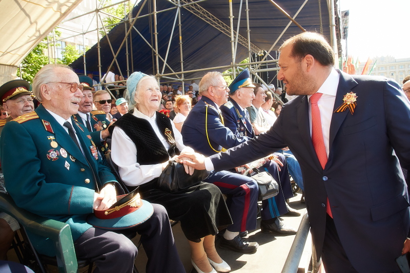 «От всей души поздравляю вас с Праздником Великой Победы. Сегодня мы чествуем тех, кто ценой своей жизни отстояли свободу нашего государства и избавили Европу от фашизма. Память о ратном подвиге наших ветеранов будет всегда жить в наших сердцах, и мы передадим будущим поколениям глубокое уважение к тому, что было сделано в тяжелые сороковые годы. Великая Победа навсегда останется одним из самых главных праздников, которые мы отмечаем в нашей стране. Слава тем, кто нам принес победу!» – сказал в своей приветственной речи Михаил Добкин.
