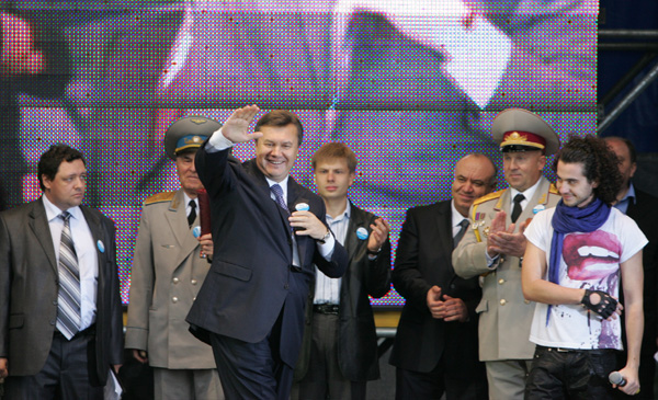 Фіналісти Першої української «Фабрики зірок» Євген Толочний та Віталій Галай на минулих вихідних, 3 жовтня 2009 року, в Одесі презентували пісню «Лідер», спеціально написану для В.Ф.Януковича.