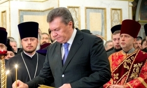 Президент Украины Виктор Янукович принимает участие в Благодарственном молебне