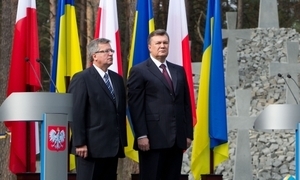Президент Украины Виктор Янукович и Президент Республики Польша Бронислав Коморовский приняли участие в церемонии открытия Мемориала жертв тоталитаризма на территории Национального историко-мемориального заповедника «Быковнянские могилы» под Киевом.