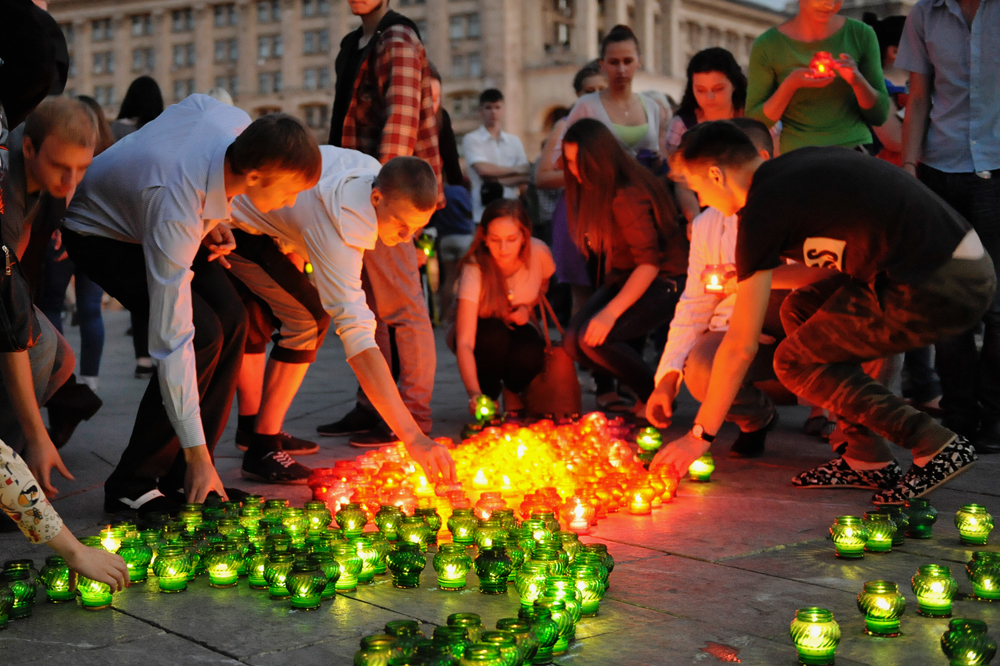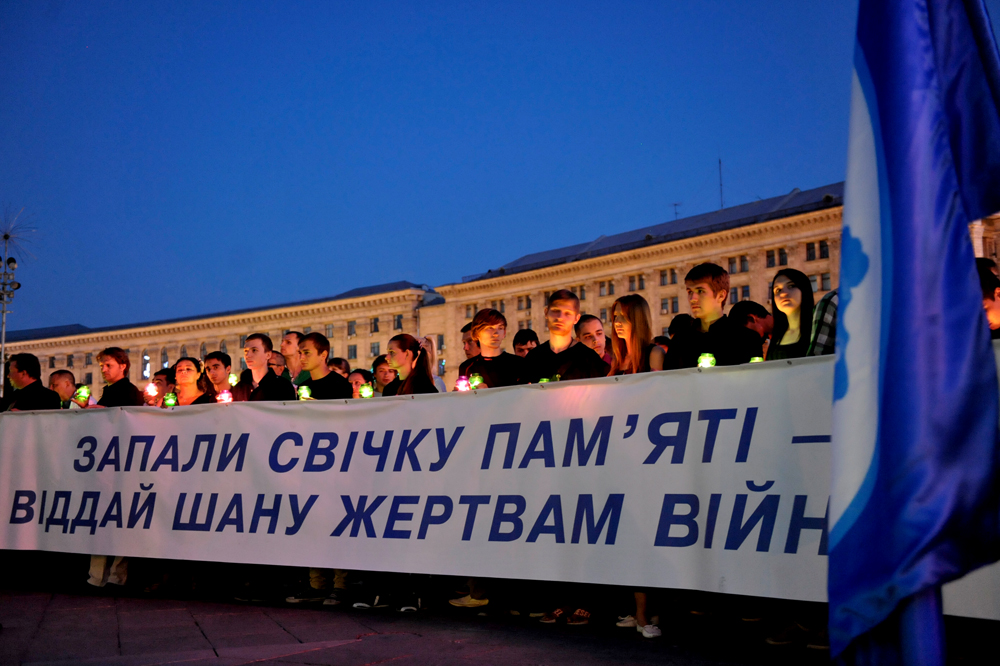 У подножья монумента Независимости из 1418 лампадок (именно столько дней длилась Великая Отечественная война) выложено слово «Помним». С 3 часов утра здесь – на центральной площади столицы – начала собираться молодежь. Для многих из тех, кто откликнулся на призыв Всеукраинской молодежной общественной организации «Молодые регионы», приобщиться к акции в честь 22 июня оказалось самым настоящим делом чести.