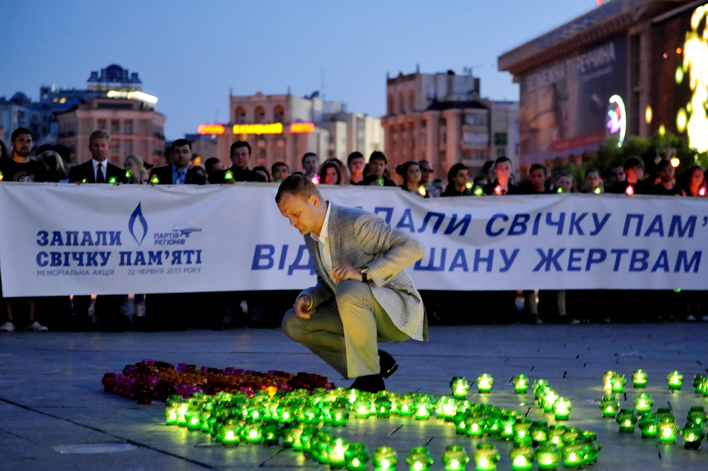 Ровно в 4 часа утра 22 июня «Молодые регионы» зажгли в Киеве на Майдане Независимости поминальные свечи в память о павших героях Великой Отечественной войны