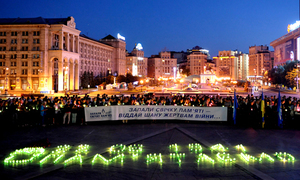 Преподаватель немецкого языка 26-летняя Ирина Семенова пришла на центральную площадь столицы с небольшой лампадкой. «Эта свеча горит в память о выпускниках советских школ, которые со школьной скамьи отправились прямо на фронт. Фактически война отобрала у них лучшие годы – их молодость», - говорит девушка. Активисты «Молодых регионов» тем временем зажигают поминальные свечи у подножья монумента Независимости.