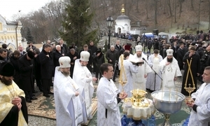 Президент Украины Виктор Янукович, Премьер-министр Николай Азаров в Свято-Успенской Киево-Печерской Лавре возле церкви «Живописный источник» приняли участие в чине Великого Освящения Воды по случаю праздника Крещения Господня.