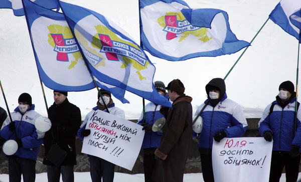 21 декабря активисты «Союза молодежи регионов Украины» и участники Форума лидеров студенческого самоуправления пришли под стены Кабинета Министров Украины потребовать от Юлии Тимошенко выполнения обещаний.