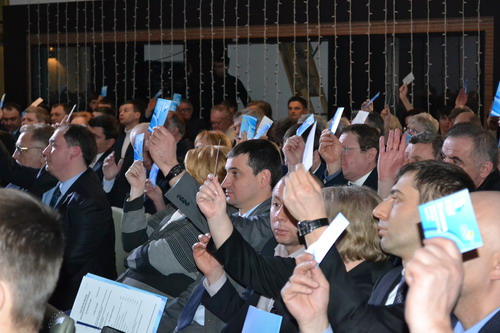 Заслушав вопрос о политической ситуации, делегаты приступили к выборам своего нового председателя, так как предыдущий глава Донецкой областной организации ПР, глава Донецкого облсовета Андрей Шишацкий вышел из партии.