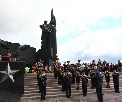Кроме того, состоялась торжественная церемония в рамках «ЭСТАФЕТЫ ВОИНСКОЙ СЛАВЫ». Активисты ПАРТИИ РЕГИОНОВ развернули Знамя воинской славы. Символом эстафеты стал артиллерийский снаряд, найденный на поле боя под Луганском. Его гильза хранит горсть земли, взятой на священном Мамаевом кургане в Волгограде. Гильзу встречали жители города Шахты Ростовской области России, города Украины - Луганск, Харьков, Сумы. Вместе с этим символом путь освобождения по 26 городам Украины пройдут Знамя воинской славы и Книга Памяти, на страницах которой разместится фотолетопись освобождения Украины. Завершится эстафета 28 октября 2014 года в городе Ужгороде у памятника «Украина - освободителям». Сегодня гильзу снаряда, принятую 2 сентября от города Сум, пополнила горсть земли, взятая в Донецке у памятника генералу Гринкевичу – освободителю города. Символ освобождения Донбасса Александр Лукьянченко передал делегации Черниговской области.