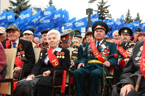 Руководители Донетчины Андрей Федорук и Андрей Шишацкий, донецкий городской голова Александр Лукьянченко вручили 9 автомобилей ветеранам ВОВ. Также состоялся парад Донецкого гарнизона, а концертная программа продолжилась у полевых кухонь.