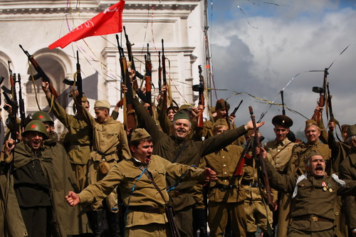 Вместе с ветеранами Великой Отечественной войны руководители области и города парадным маршем проследовали к мемориалу Освободителям Донбасса, где приняли участие в митинге. Участники митинга почтили Минутой молчания всех погибших за освобождение Донбасса.