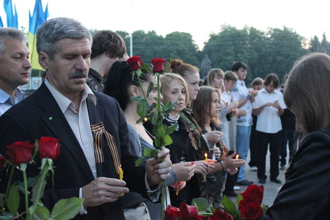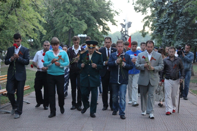 «Эта дата оставила неизгладимый след в истории нашей Родины, – убежден инициатор акции, депутат Луганского областного совета от ПАРТИИ РЕГИОНОВ, председатель ЛОО ВМОО «Молодые регионы» Олег Акимов. – Память о событиях той страшной войны, искалечившей судьбы миллионов людей, не может оставить равнодушным любого нормального человека. Ведь Великая Отечественная война коснулась каждого из нас в буквальном смысле слова. Не помня прошлого, не будем иметь будущего. Подвиг солдат, ставших на защиту нашей Родины, бессмертен. И в этот день мы в очередной раз повторяем: «Никто не забыт, ничто не забыто!»