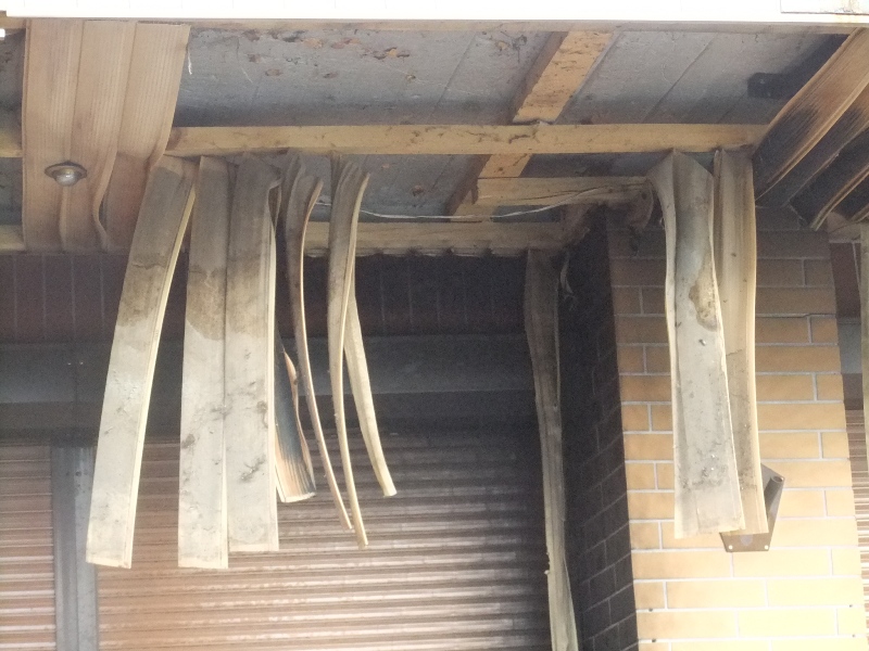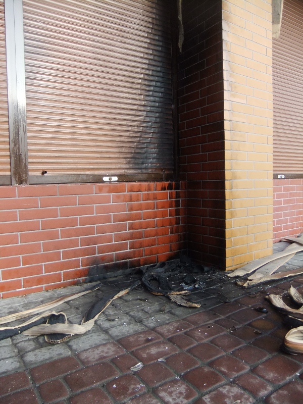 В результате поджога сильно повреждены жалюзи, обгорела подшивка кровли.