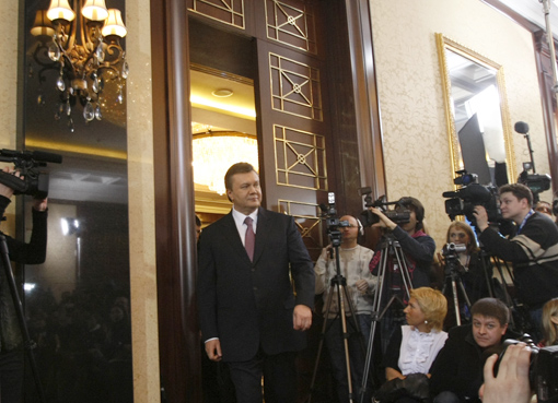На брифінгу після оприлюднення результатів екзит-полів кандидат у Президенти України, Голова Партії регіонів Віктор Янукович відповів на запитання присутніх журналістів.