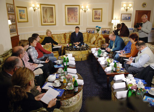 Під час спілкування у «Зоряному» журналісти зауважили, що у своїх виступах Віктор Янукович завжди робить наголос на дружніх стосунках з Російською Федерацією, та поцікавилися, чому саме так, і на яких засадах Лідер Партії регіонів планує будувати стосунки з іншими країнами світу.