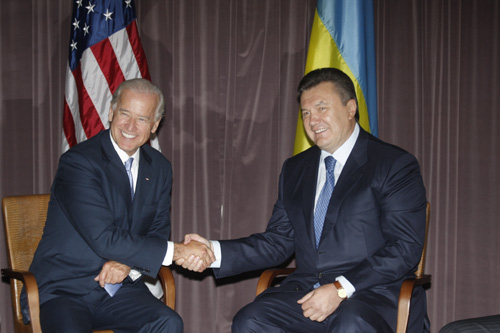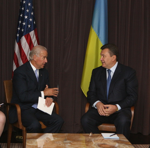 Сьогодні у готелі „Хайят” у Києві відбулася зустріч Голови Партії регіонів Віктора Януковича та віце-президента Сполучених Штатів Америки Джозефа Байдена. Вона тривала майже годину. По її завершенні Лідер опозиції провів короткий брифінг для представників ЗМІ.