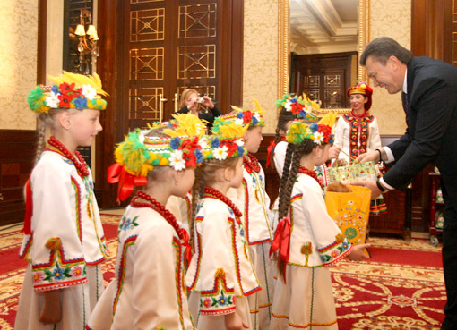 Віктор Янукович привітав дитячий фольклорний колектив „Зозульки” зі Львова з Новим роком та Різдвом Христовим.