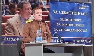 В канун праздника Великой Победы народный депутат Украины, член парламентской фракции ПАРТИИ РЕГИОНОВ Вадим Колесниченко пообщался с представителями средств массовой информации в Севастополе. На встречу с прессой он пришел в форме офицера Красной Армии, пишет .