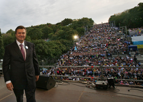 Обращаясь к горожанам с огромной сцены, установленной возле Морского вокзала, Виктор Янукович выразил глубокую благодарность одесситам за приглашение на этот прекрасный праздник.