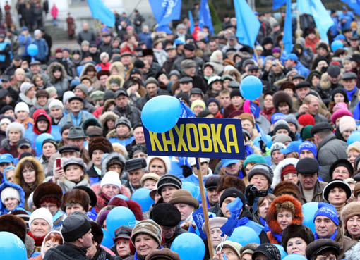 Люди встречали Виктора Януковича с огромным воодушевлением. «Янукович – народный президент!», «Херсонщина за Януковича!», «Янукович – Лидер всей Украины!» - плакаты с такими словами и огромное «море» флагов заполнили в этот день площади Новой Каховки и Херсона.