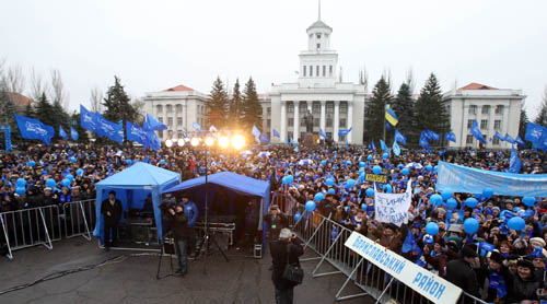 «Виктор Янукович – мы с вами!» - эти голоса в свою поддержку кандидат в Президенты Украины слышал сегодня много тысяч раз.