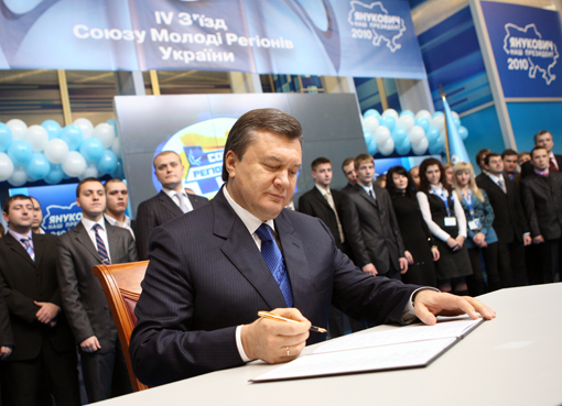 Сегодня состоялся ІV съезд Союза молодежи регионов Украины, на котором выступил Лидер Партии регионов Виктор Янукович. По завершении съезда кандидат в Президенты Украины подписал Меморандум о сотрудничестве. В нем четко определены задачи в области молодежной политики, которые обязуется выполнить Виктор Янукович после победы на предстоящих выборах.