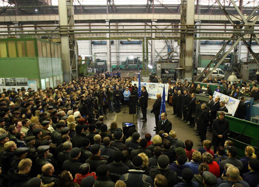 Во время рабочей поездки в Сумскую область Виктор Янукович посетил Сумское ОАО «СНПО имени Фрунзе», где после ознакомления с производством встретился с работниками предприятия.
