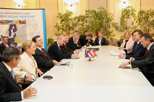В эти минуты в представительстве Европейского Союза в Украине проходит встреча Лидера Партии регионов Виктора Януковича с Президентом Еврокомиссии Жозе Мануэлем Баррозу, премьер-министром председательствующей в ЕС Швеции Фредриком Рейнфельдтом и европейским комиссаром по вопросам торговли и европейской политике соседства Бенитой Ферреро-Вальднер.