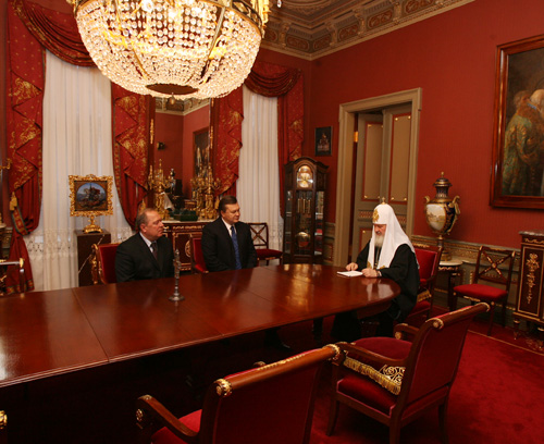 Лидер Партии регионов Виктор Янукович встретился с Патриархом Московским и Всея Руси Кириллом. Встреча прошла в Патриаршей резиденции в Москве.