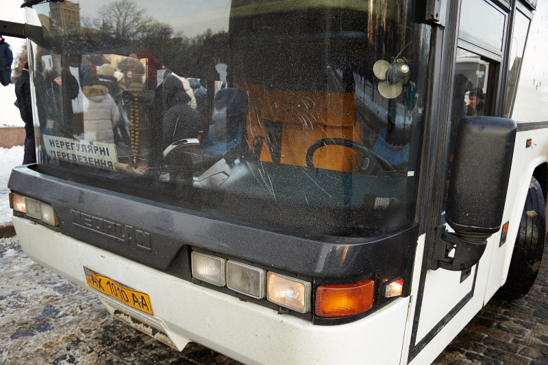 По словам одного из участников поездки Михаила Литвинова, сегодня примерно в 6 утра около 100 жителей Харьковщины на двух автобусах приехали в Киев.