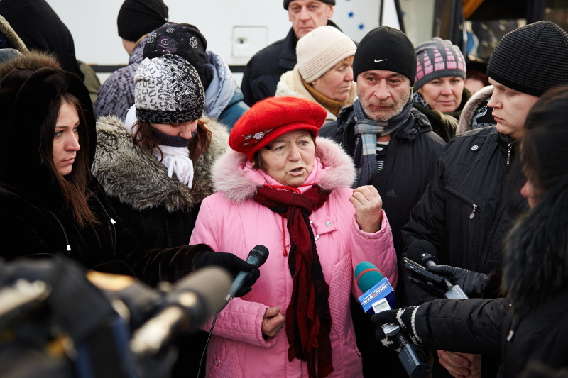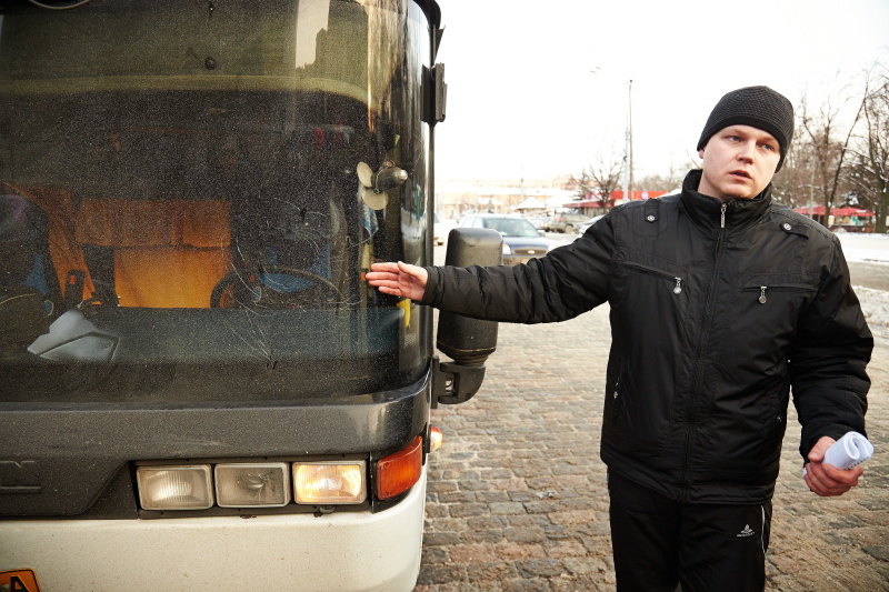 Михаил Литвинов рассказал, что «на пересечении улицы Старонаводницкой и улицы, которая поднимается к Родине-матери, нам перегородили дорогу автомобилями. Из них вышли молодые люди в масках, с битами. Каждый из автобусов окружило около 200 человек. Они подошли к нашим автобусам и начали колотить по ним дубинками и палками. Водитель одного из автобусов приоткрыл окно и спросил, почему заблокирован проезд, но ему ответили ударами палок. Он закрыл окно, но люди в масках начали бить по лобовому стеклу автобуса. Они угрожали водителю и требовали, чтобы он открыл дверь в автобус. После этого несколько человек в масках зашли в автобус. У одного из них был пистолет, он держал палец на спусковом крючке и ходил по автобусу, наставляя оружие на людей. За ним зашел молодой человек с гранатой в руке. Эти люди обзывали нас, невзирая на то, что большинство участников поездки – женщины пенсионного возраста. Также нам говорили, что если мы еще раз появимся в Киеве, автобус подожгут. Сами же они называли себя киевлянами. Мы развернули автобусы. И до выезда из Киева нас сопровождали два автомобиля».