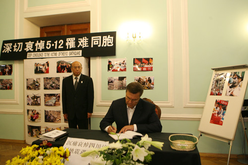 Лідер Партії регіонів Віктор Янукович відвідав Посольство Китайської Народної Республіки в Україні і залишив запис у Книзі співчуття, яка відкрита з приводу руйнівного землетрусу в провінції Сичуань.