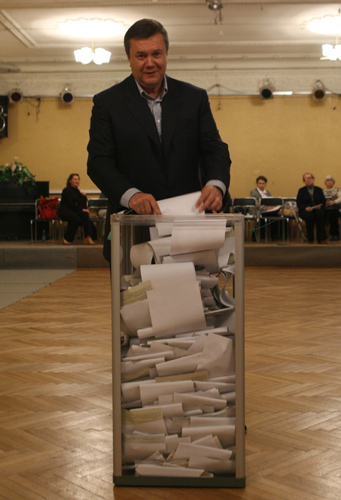 Лидер Партии регионов Виктор Янукович принял участие в голосовании по выборам мэра Киева и депутатов Киевсовета.