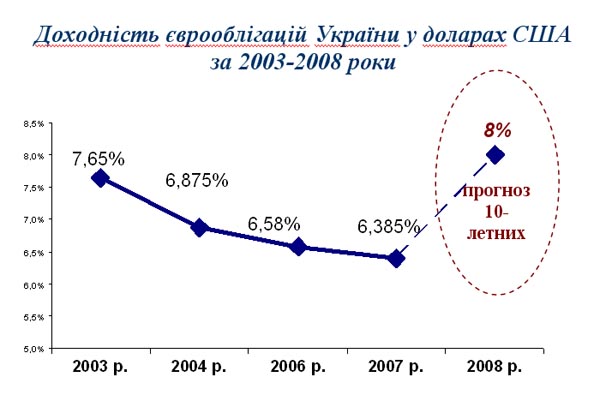 Поэтому в 2007 году Украина разместила еврооблигации с самой выгодной для себя доходностью: 6,385%. То есть, с минимальной платой за пользование заемными средствами.